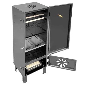 Udírna je laserově vypalována a svařována, je vyrobena z plechu o síle 2 mm a lakováno barvou odolnou do 800 stupňů.