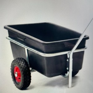 Lehký zahradní plastový vozík, kolečko. Dvě kola s opěrnou nohou (vozík zůstane stát rovně), vhodné na převoz rostlin při sázení atd. vyndavací plastová korba o objemu 90 litrů, celková délka: 147cm, celková šířka: 60cm, celková výška: 72cm, velikost korby: 78x48x30, váha 13kg.